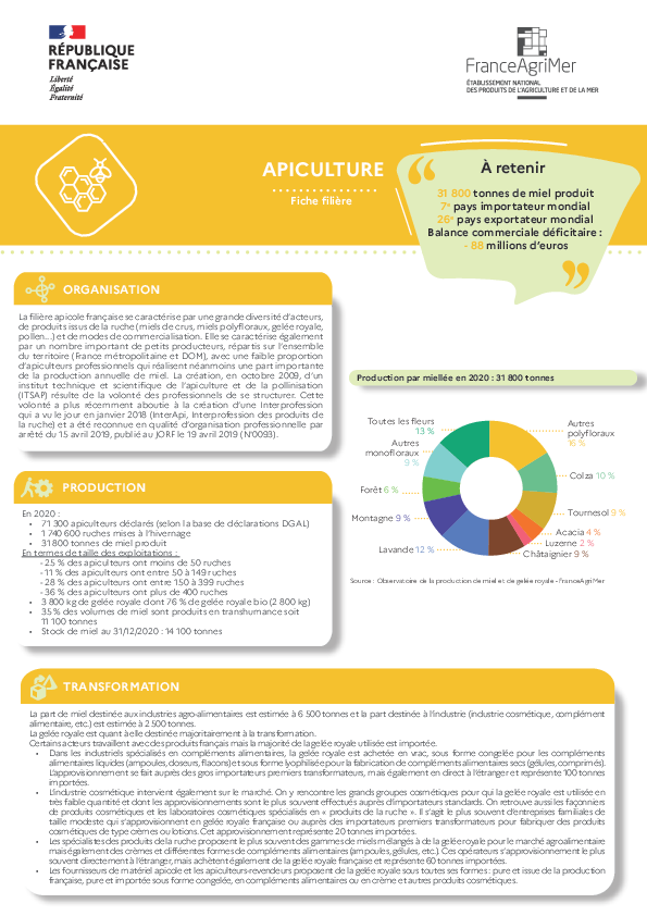 Fiche Filière Miel AgriMer Publication 2022 pour l'année 2020 mise en relief par rapport à 2021